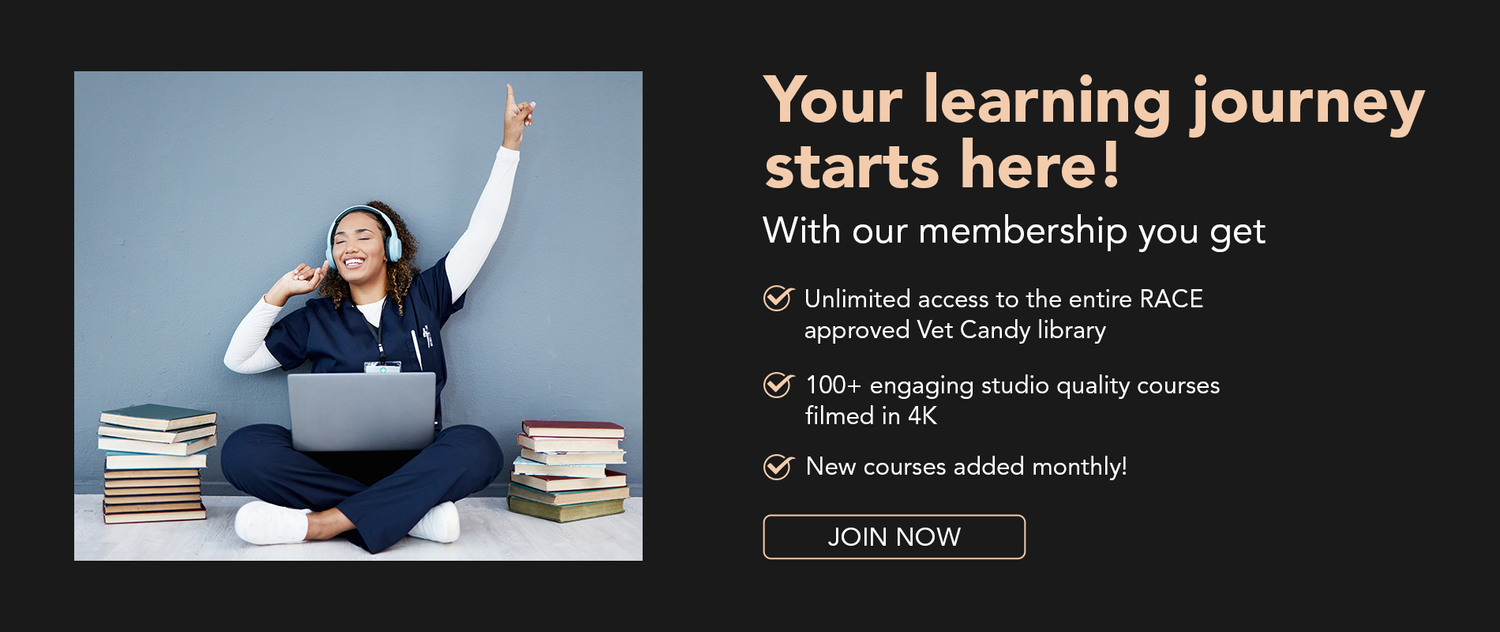 Get binge-worthy veterinary education, podcasts, NAVLE prep, RACE-approved CE, and career tools—all designed for real vet life.