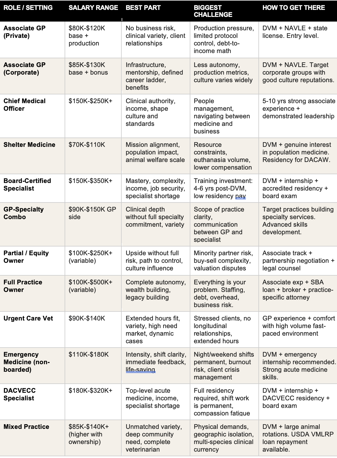Here is every major practice configuration in veterinary medicine, what it actually looks like from the inside, and what it takes to get there.
